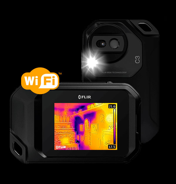 The FLIR C3 is designed to be your go-to tool for building inspections, facilities maintenance, HVAC, or electrical repair. This slim camera fits easily in your pocket so you can take it anywhere. Its integrated touch-screen is a snap to learn, so you can quickly get to the job of finding hidden problems, documenting repairs, and sharing images over Wi-Fi.